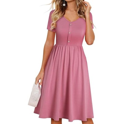Womens Summer Ruffle Short Sleeve Sundress V Neck Tunic Dress Casual Loose Flowy Swing Shift Dress Mini Dress