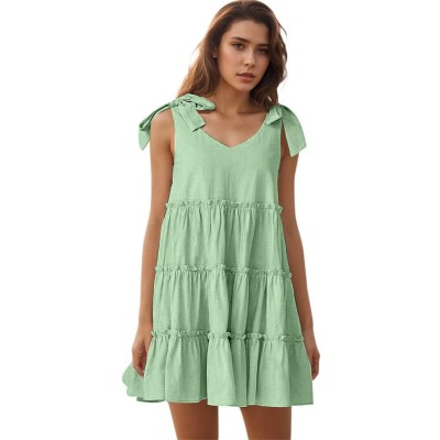 Womens Summer Dresses Flowy Dresses for Women Casual Beach Dress V Neck Sleeveless Mini Dress Ruffle Sundress