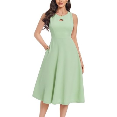 Wedtrend Women's Vintage Dress with Pockets, Midi A-line Cocktail Dress, Cutout Church Dresses