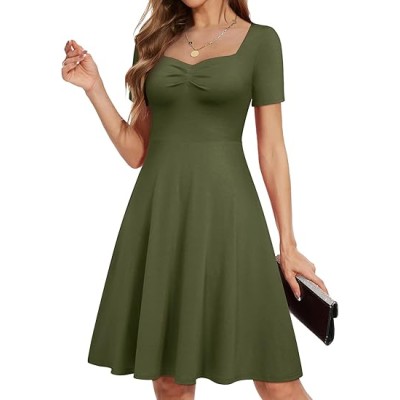 Dresses for Women Wedding Guest Knee Length Summer Casual Short Sleeve Cute Sweatheart Neck Milkmaid Aline Dress