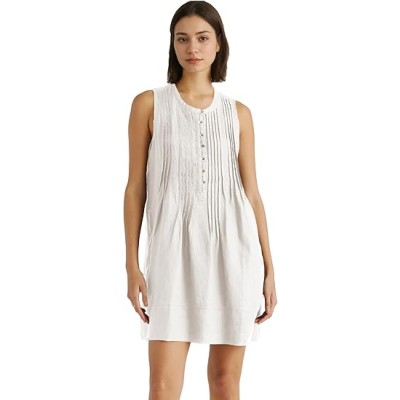 Women's Cotton Linen Crew Neck Sleeveless Swing Dress Casual Front Button Dresses with Pockets
