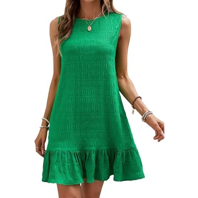 Women's Ruffle Hem Sleeveless Tank Dress Round Neck Casual Smock Summer Mini Dresses