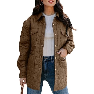 Quilted Jackets for Women Lightweight Long Sleeve Button Down Puffer Jacket Warm Winter Coat Outerwear with Pockets