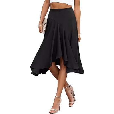 Women's Midi Skirt Elegant Flowy Ruffle High Waist Summer Casual High Low Midi Skirts