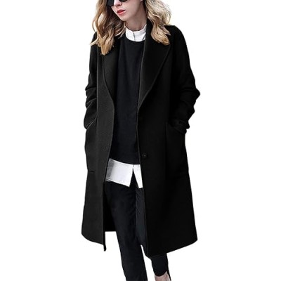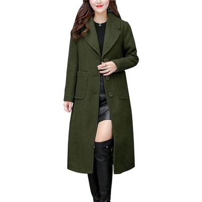 Women's Winter Casual Single Breasted Long Wool Coat Formal Office Wool Overcoat