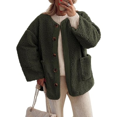 Women's Warm Winter Coats Casual Long Sleeve Button up Fuzzy Sherpa Fleece Jackets Outerwear
