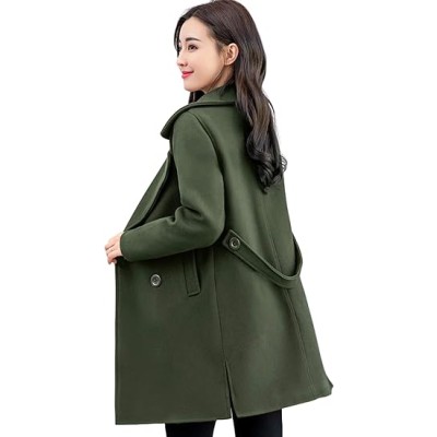 Women's Elegant Lapel Collar Double Breasted Wool Blend Pea Coat with Belt