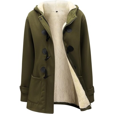 Women's Sherpa Lined Jacket Duffle Toggle Coat Fleece Hooded Winter Warm Jacket Sweatshirt