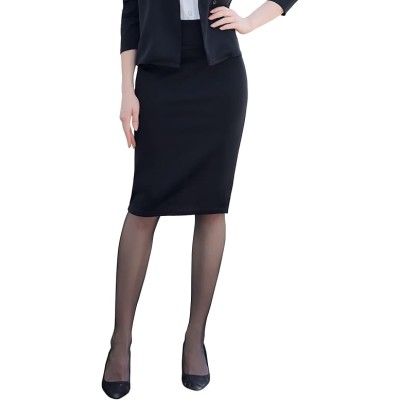 Women's Elastic Waist Stretch Bodycon Midi Pencil Skirt - Premium Nylon Ponte Office Straight Skirt